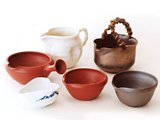 実際に握ってみて手にあったものが一番です。お好みにもよりますが、本体の後ろに握り柄のあるポットタイプや、つるがついた土瓶タイプ、また「しぼり出し」とよばれる握り柄のない急須もあります。 |