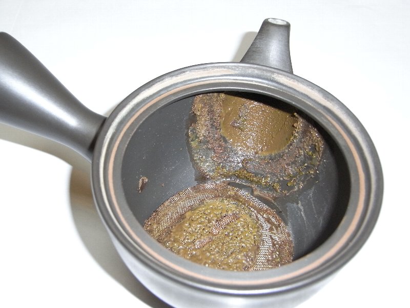 不潔な急須では美味しいお茶ははいりません。定期的に薄めの漂白剤で洗浄するか、お好みもありますが、網が取り外せる急須を使うのもひとつの方法です。 |